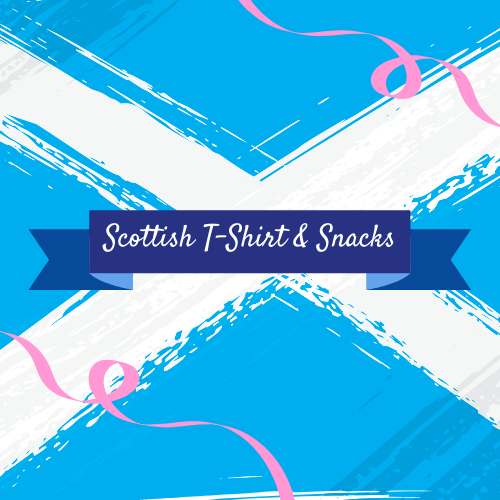 LIMITED QUANTITIES...For the month of December ONLY. Receive a surprise Scotland themed T-shirt, printed in the UK, as well as additional Scottish snacks. Buy this as an upgrade to your Scottish Box, or on its own as a single purchase. ORDER NOW- Ships worldwide on or around December 20th 2019